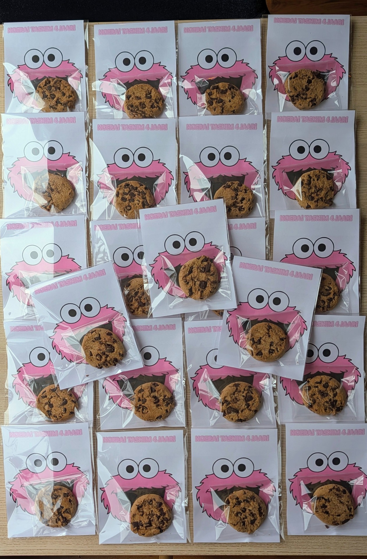 Heb je zelf geen tijd of inspiratie om een traktatie te maken? Bestel dan deze leuke roxe koekiemonster met een apart verpakt chocolate koekje.